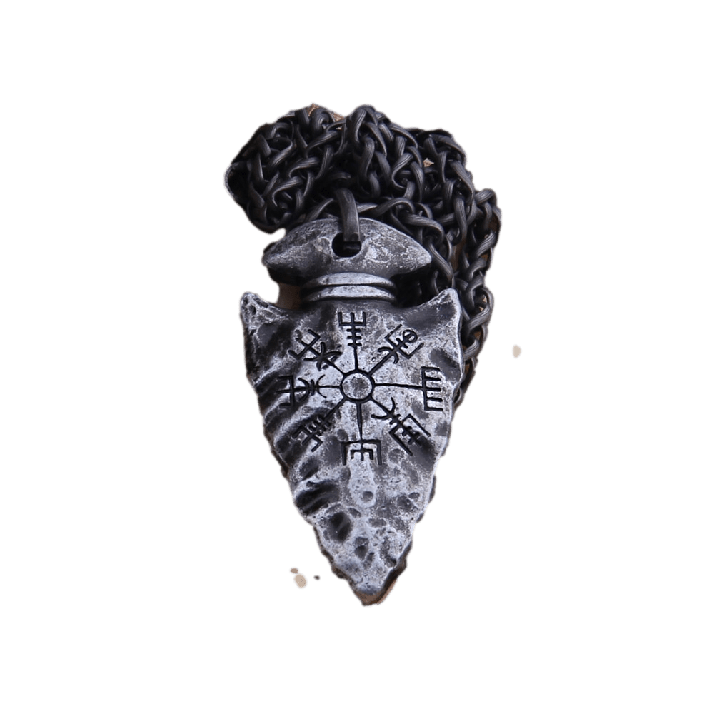 Collar con colgante de lanza vikinga "Helm of Awe" y "Viking Vegvisir"